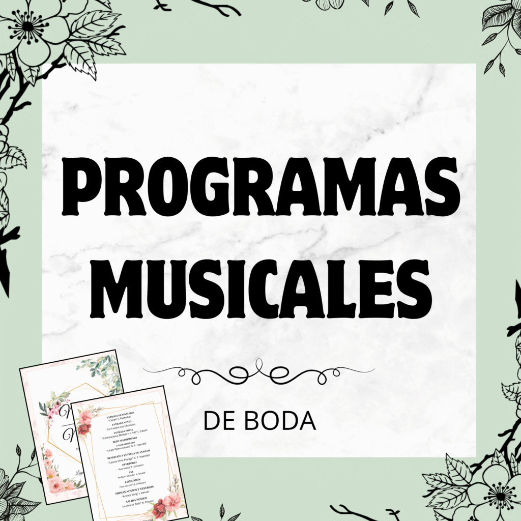 Estos son sólo programas musicales, si quieres programas de boda de ceremonia, de recepción, para niños, completos: ceremonia y recepción juntos, o invitaciones y respuestas de boda puedes adquirirlos en: